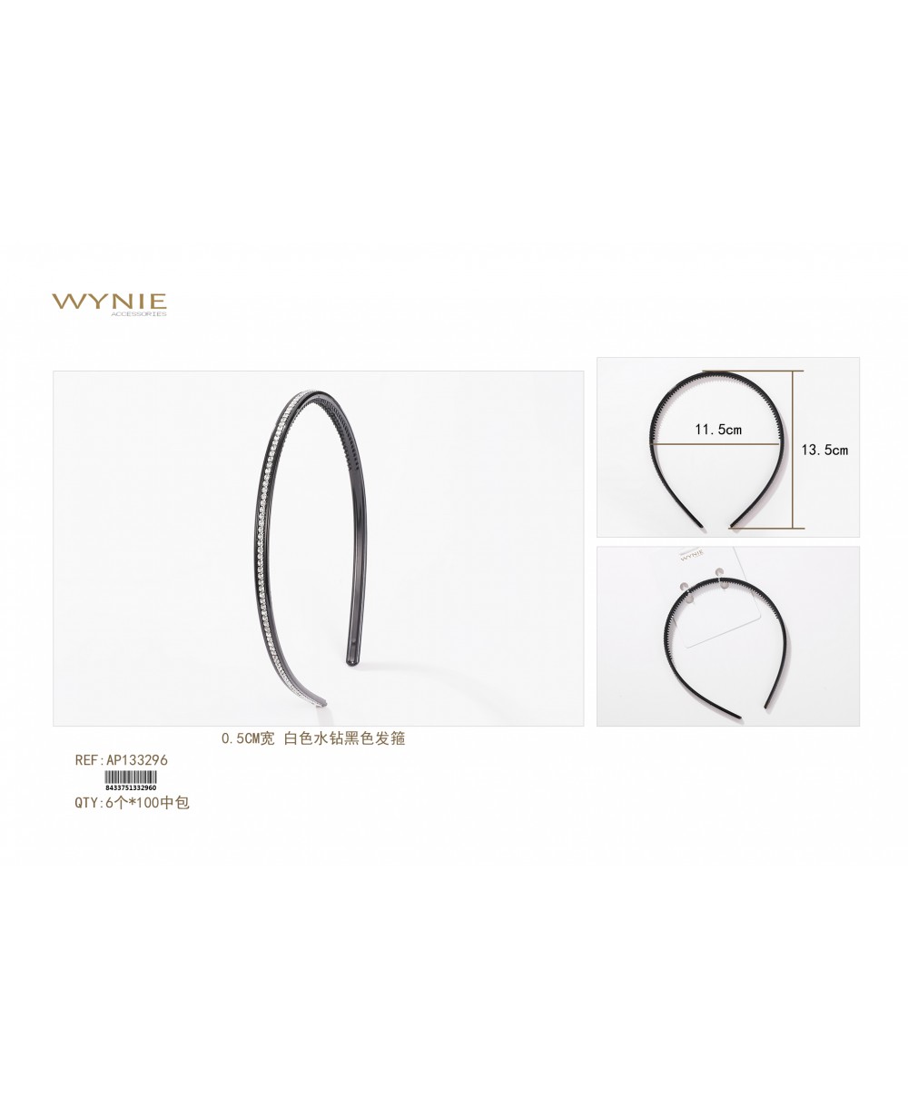 HAIRBAND WITH RHINESTONES, BLACK PLASTIC, 0.5 CM