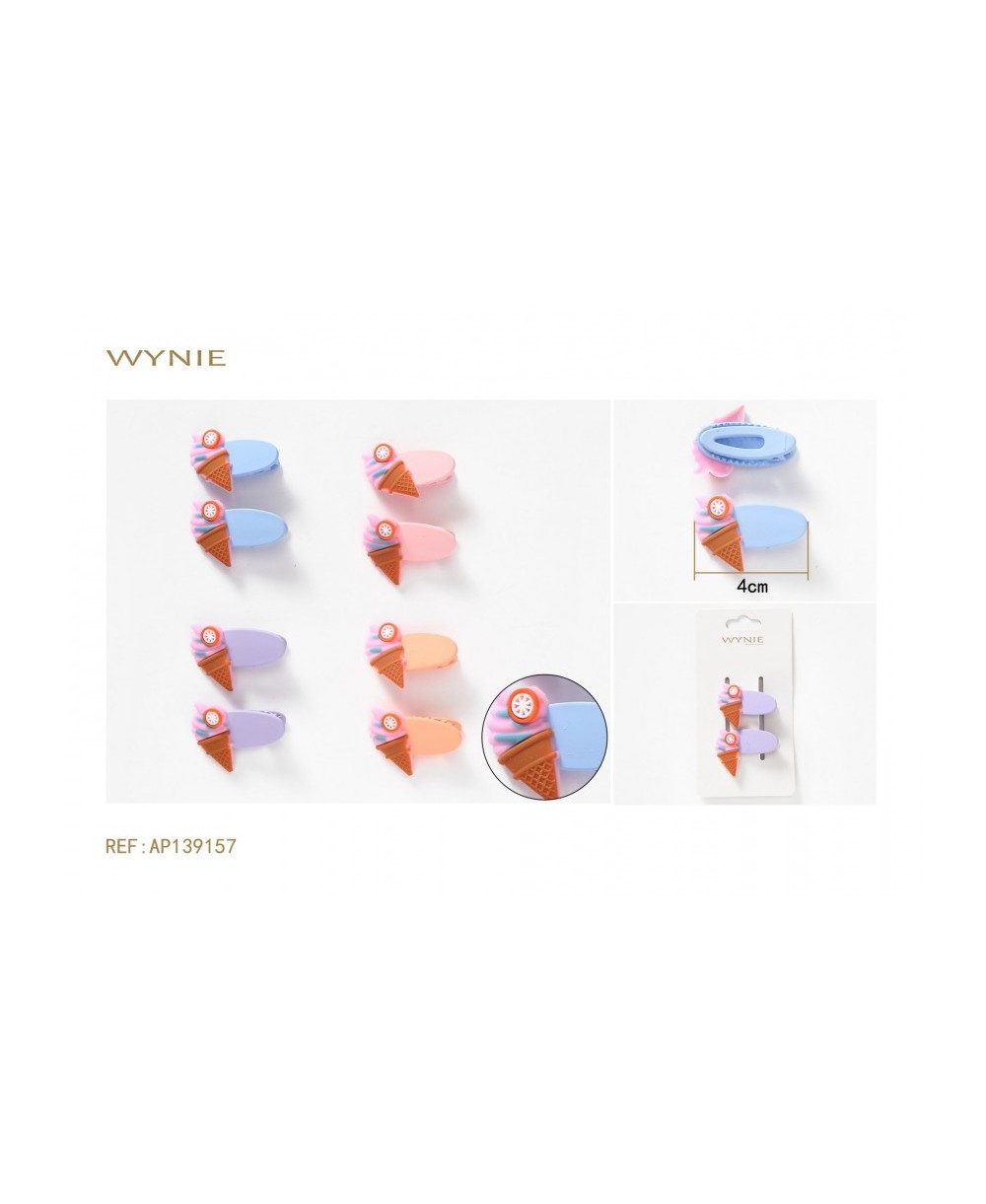 4CM HAIR CLIP MADE OF POLYESTER IRON, AND PLASTIC LILAC, GREEN, BLUE, YELLOW