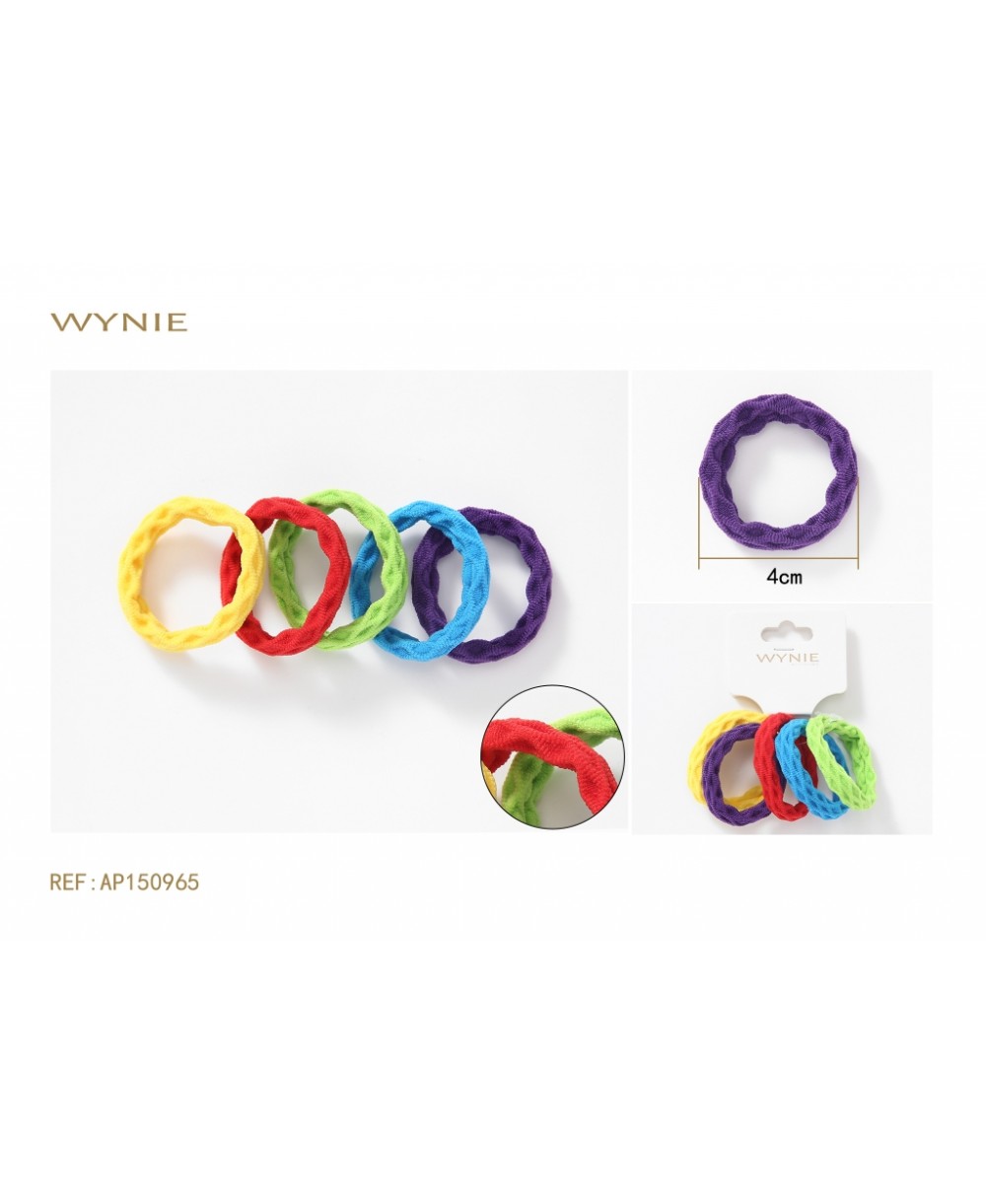 12 Units/Pack. 0.3 €/Unit 5 * 2CM HAIR ELASTIC, COTTON YARN, ORANGE + PINK + LIGHT PURPLE, BLUE + ROSE + YELLOW