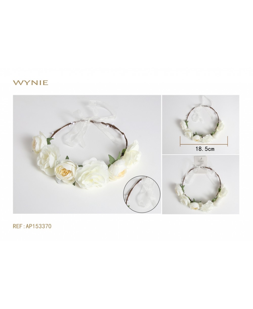 18.5CM FLOWER CROWN, WHITE, IRON+POLYESTER+PLASTIC