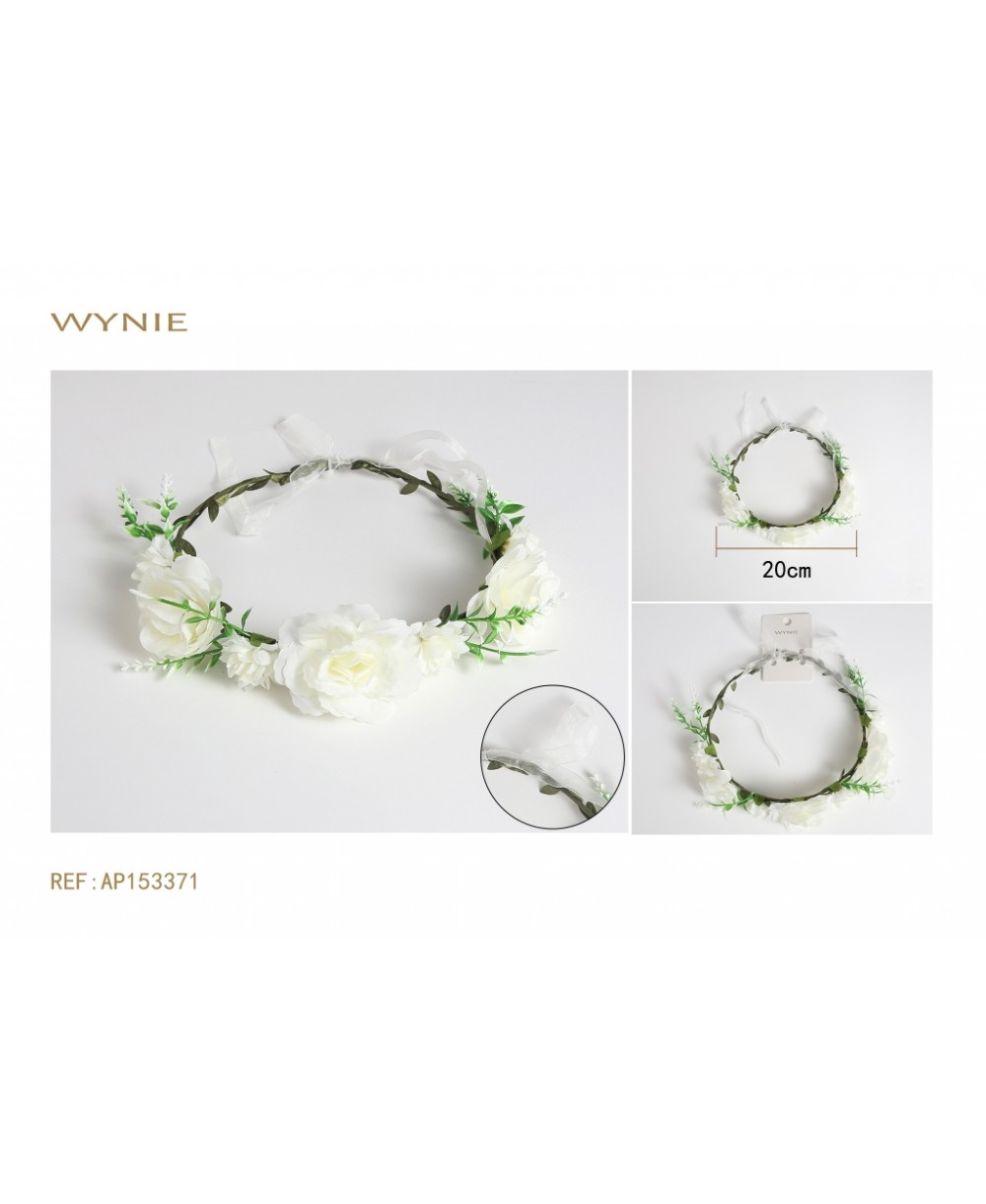 20CM FLOWER CROWN, WHITE, IRON+POLYESTER+PLASTIC