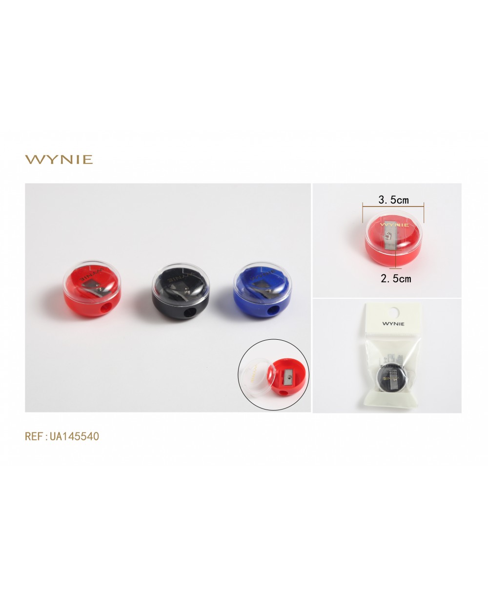 2.5*3.5CM SHARPENER,POLYSTYRENE,ACIER RED, BLACK, BLUE