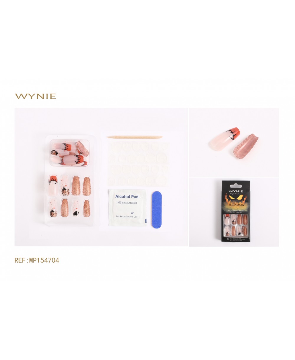 24PCS FALSE NAILS, MADE OF ABS, POLYESTER, WOOD, PET, WITH HALLOWEEN PRINT