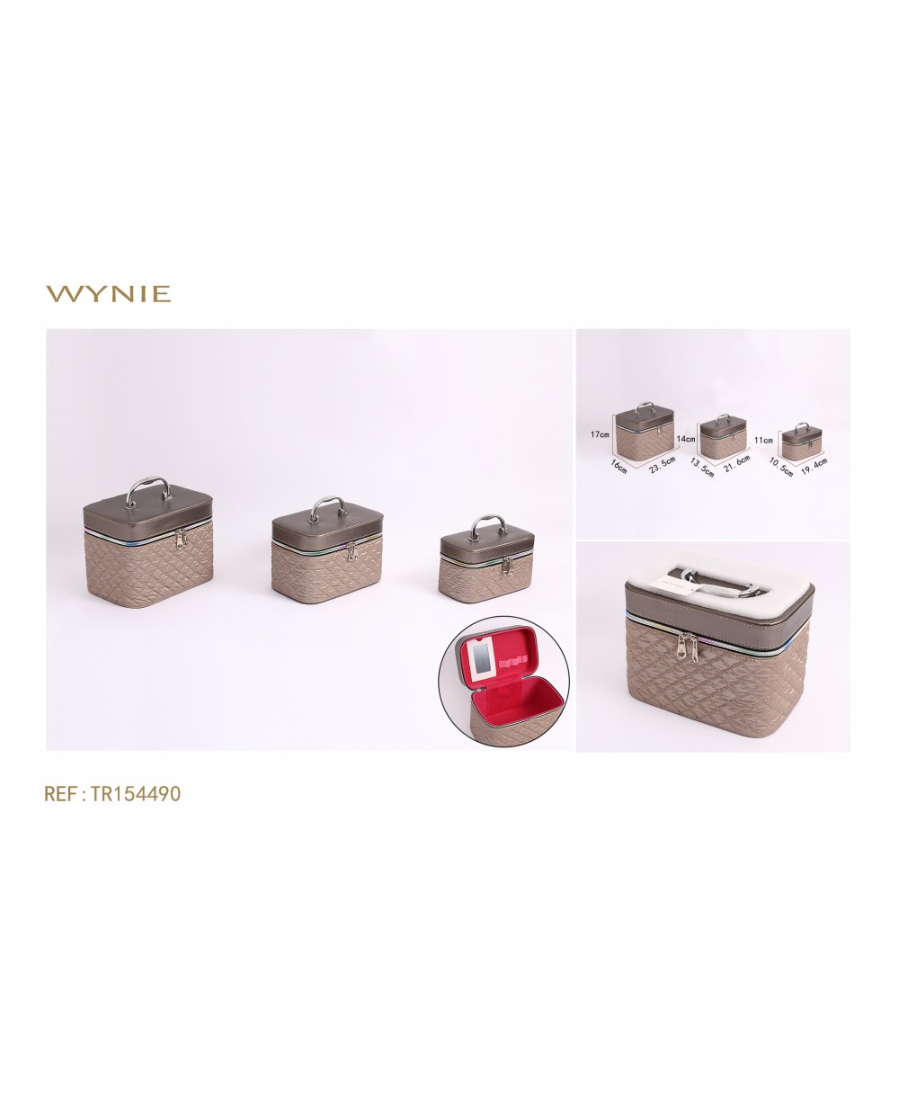3 PIECES COSMETIC BAG, MADE OF POLYESTER, BROWN