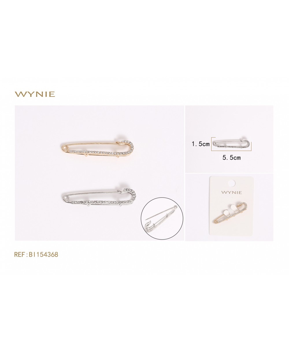 BROOCH 1.5*5.5CM,ZINC ALLOY + IRON + GLASS,SILVER,GOLDEN