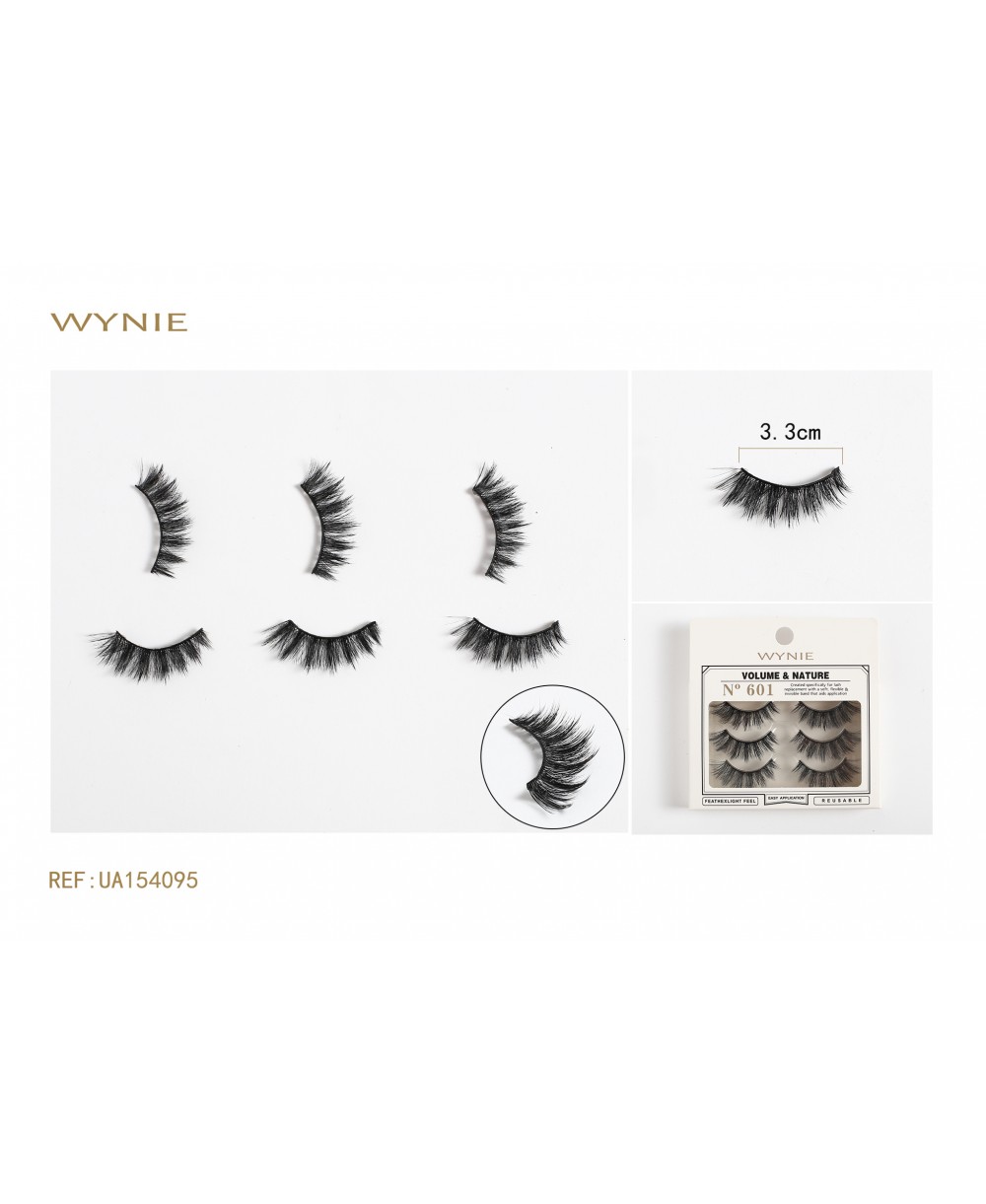 3 PAIRS FALSE EYELASHES, BLACK SYNTHETIC FIBER