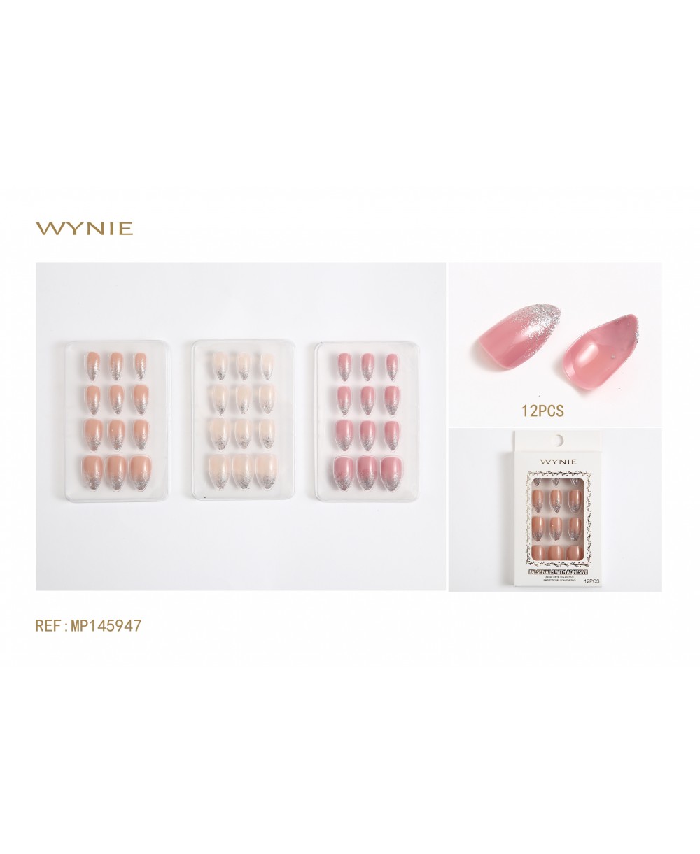 12PCS PLASTIC FAKE NAILS, WINE RED, PINK, DARK RED COLOR