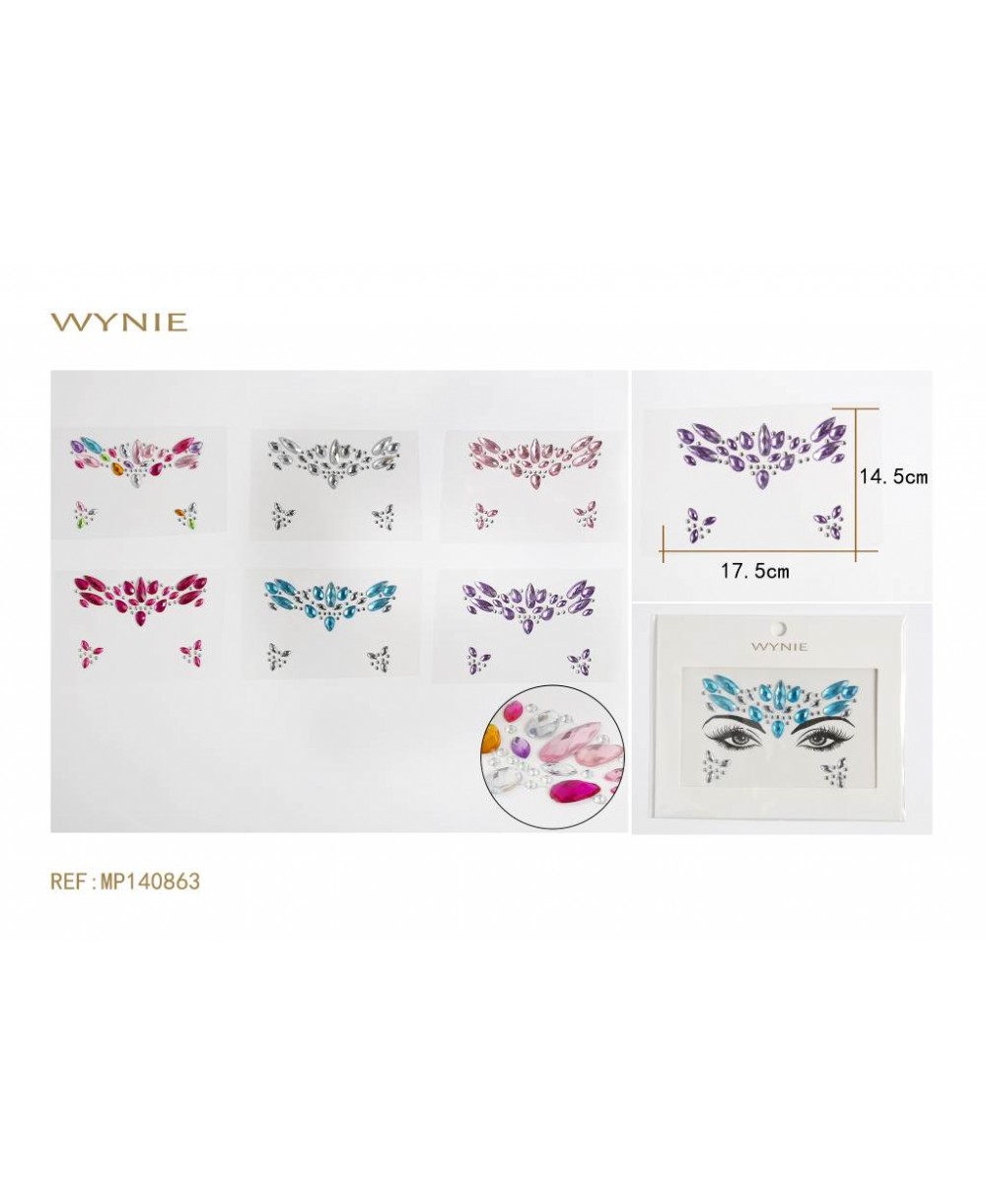 12 Units/Pack. 0.5 €/Unit 14.5 * 17.5CM FACE STICKER, ACRYLIC, WHITE , MULTICOLOR, LIGHT BLUE, LILAC, RED, PINK