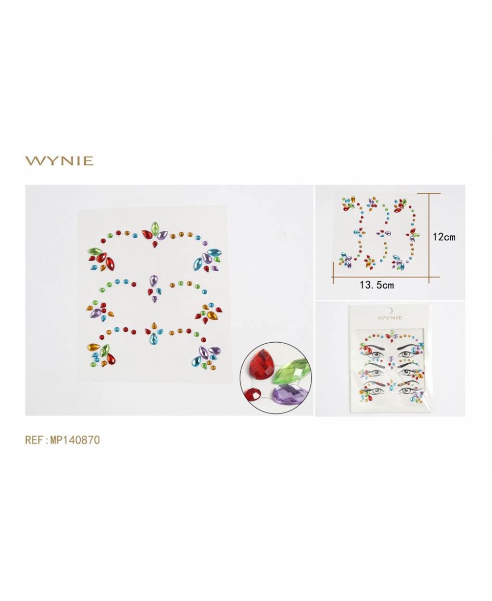12 Units/Pack. 0.5 €/Unit 14.5 * 17.5CM FACE STICKER, ACRYLIC, WHITE , MULTICOLOR, LIGHT BLUE, LILAC, RED, PINK