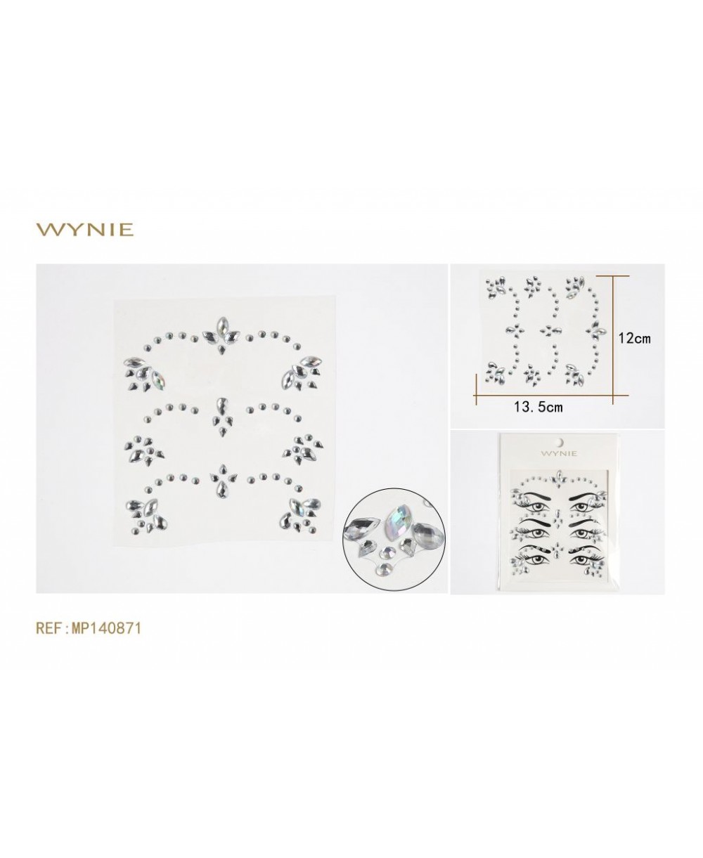 12 Units/Pack. 0.5 €/Unit 14.5 * 17.5CM FACE STICKER, ACRYLIC, WHITE , MULTICOLOR, LIGHT BLUE, LILAC, RED, PINK