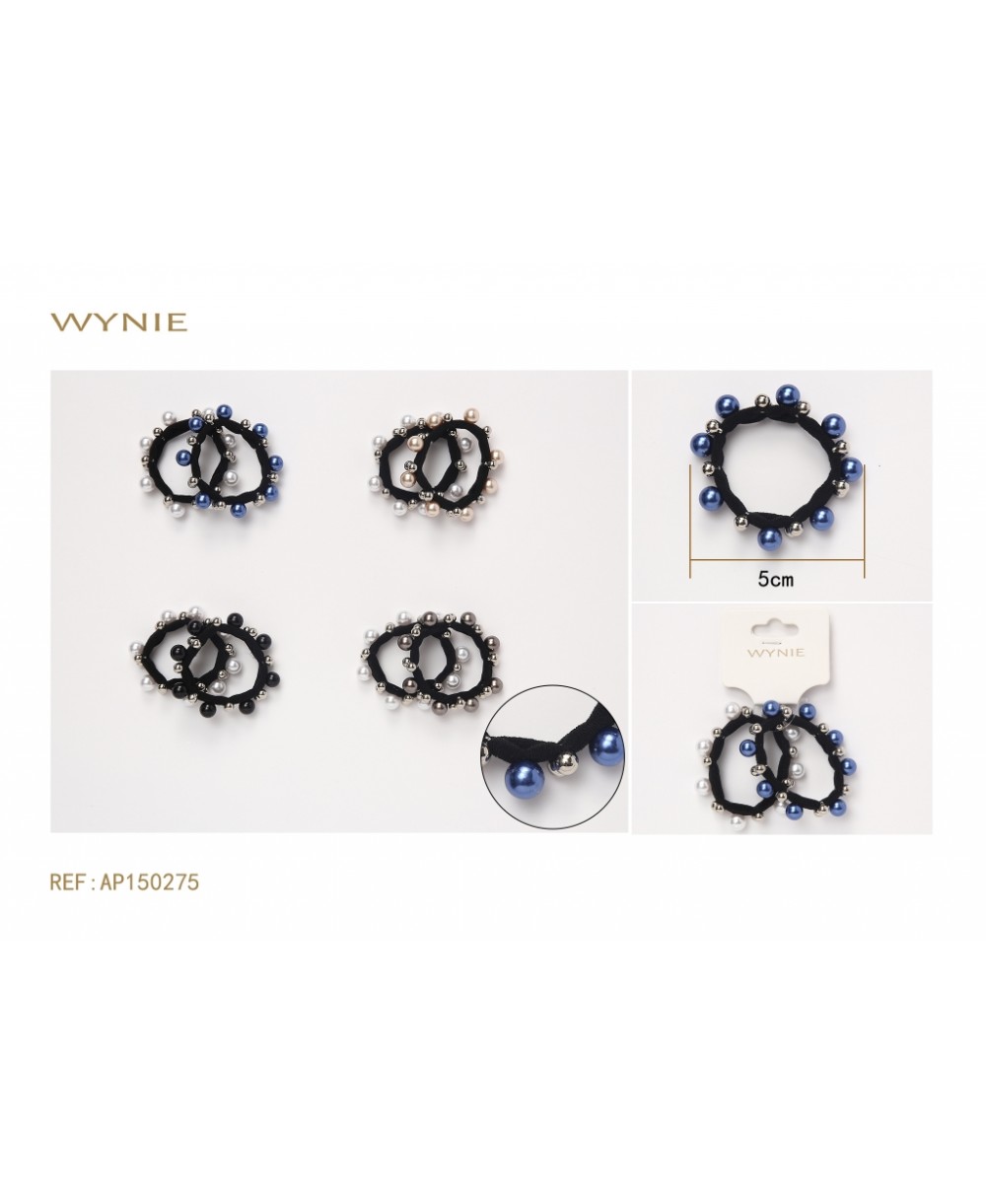 5CM GOMA DE PELO NEGRO CON PERLAS DE COLOR BLANCO,ORO,AZUL,NEGRO,GRIS
