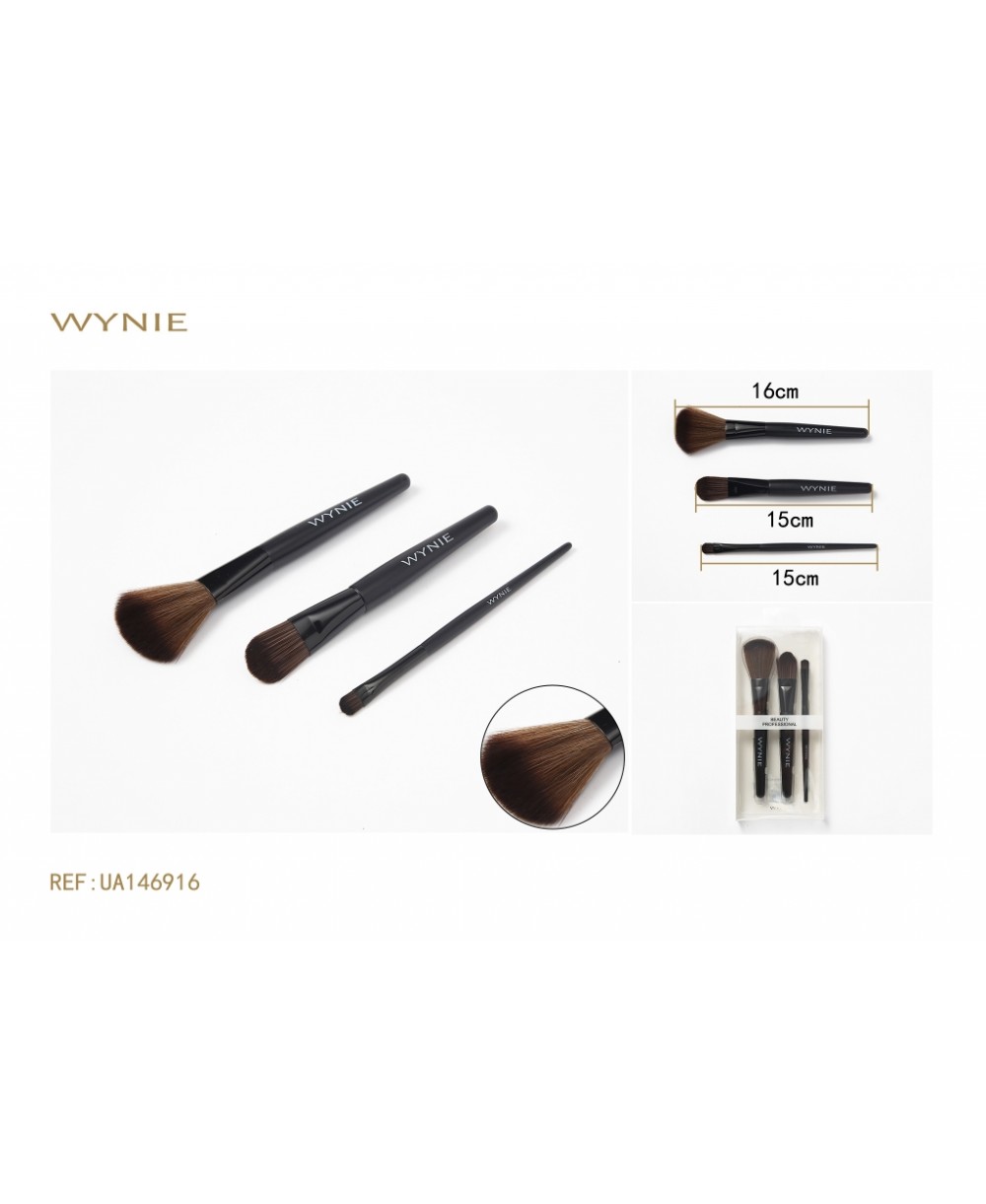 15CM, 15CM, 16CM JUEGO DE 3 PINCELES PARA SOMBRAS DE OJOS, NYLON Y ALUMINIO, MARRÓN