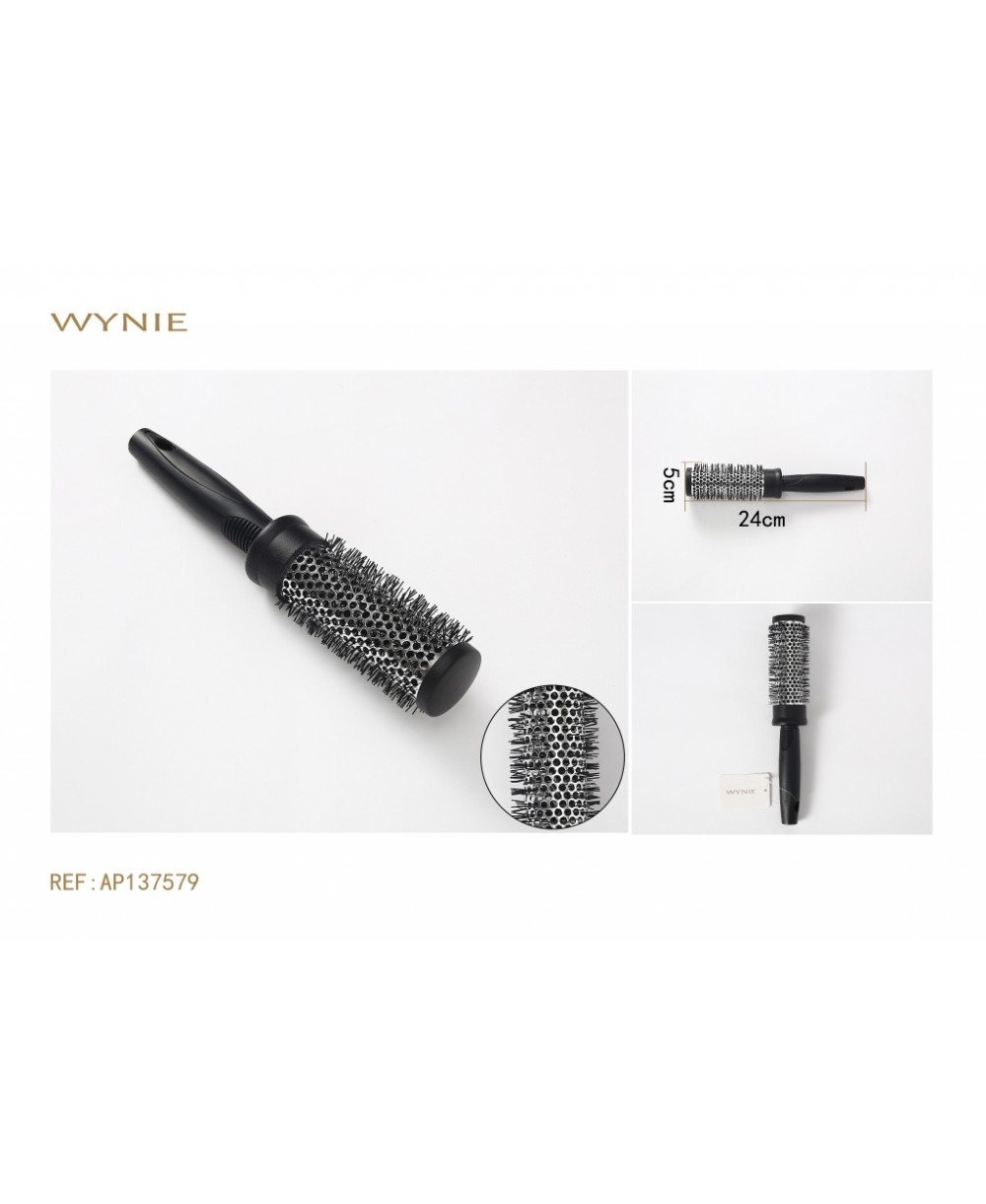 CEPILLO TÉRMICO PARA CABELLO 5*24CM TUBO DE ALEACIÓN DE ALUMINIO COBRE, MANGO DE PLÁSTICO NEGRO, CON CUERPO DE ALUMINIO QUE RETIENE EL CALOR, PARA UN SECADO RÁPIDO Y RIZOS BIEN DEFINIDOS.