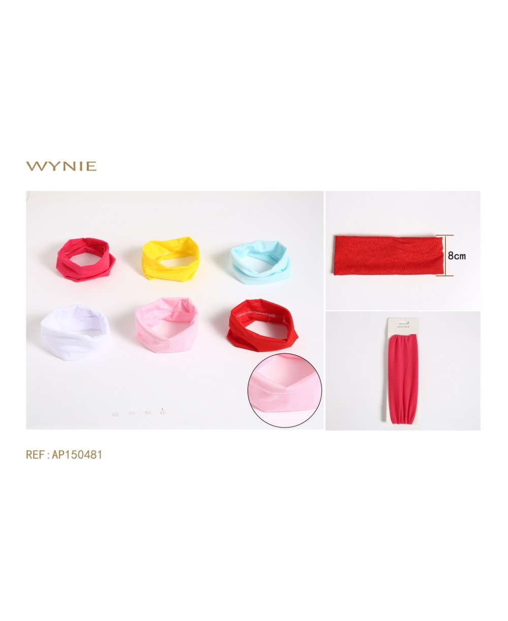 CINTA PARA EL PELO DE 8 CM EN POLIÉSTER AZUL CLARO, BLANCO, AMARILLO, ROJO, FUCSIA, ROSA