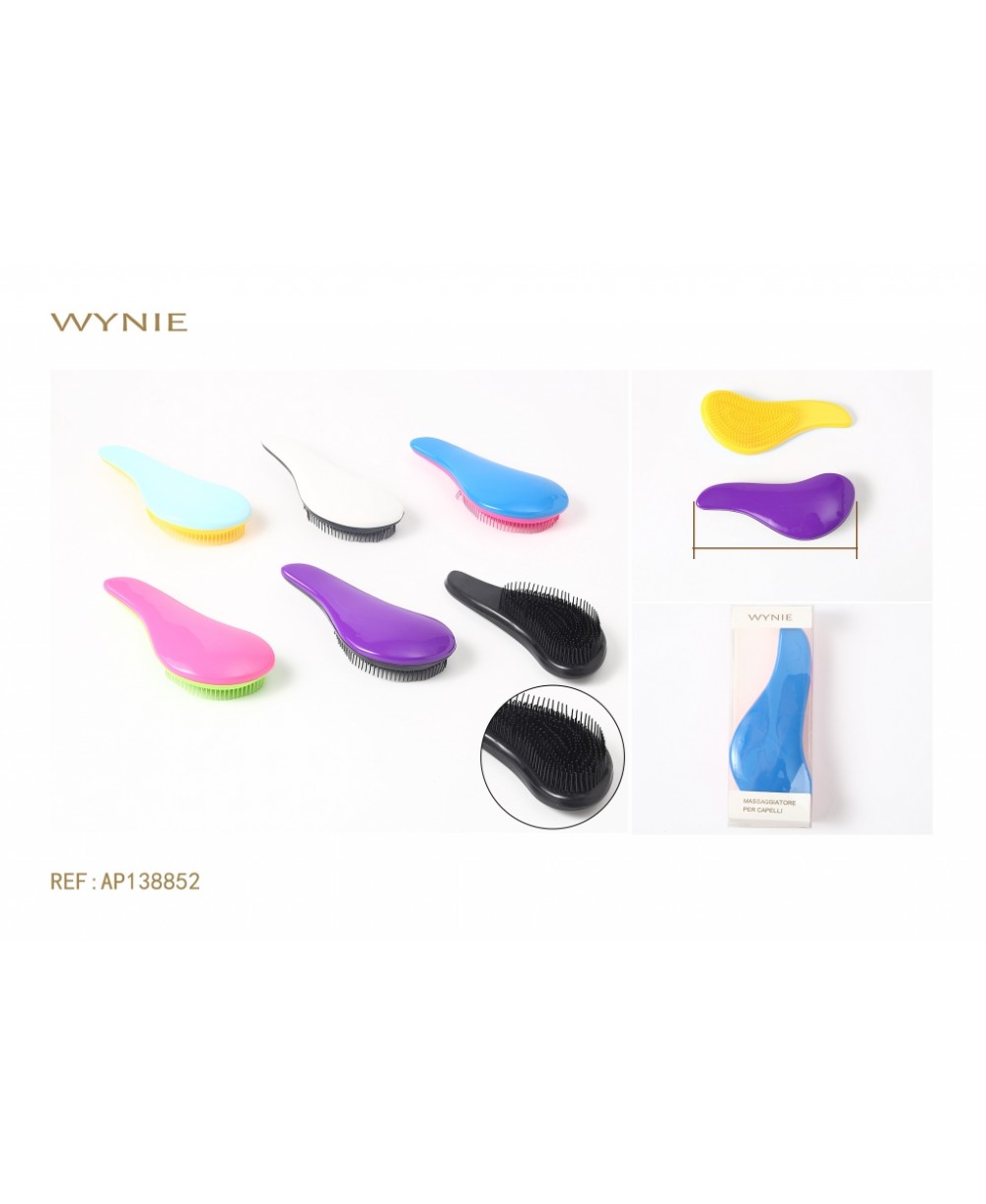 CEPILLO DE MASAJE PARA EL PELO DE 19 CM, FUCSIA + VERDE, BLANCO + NEGRO, AZUL + FUCSIA, VERDE AGUA + AMARILLO, PÚRPURA + NEGRO, NEGRO