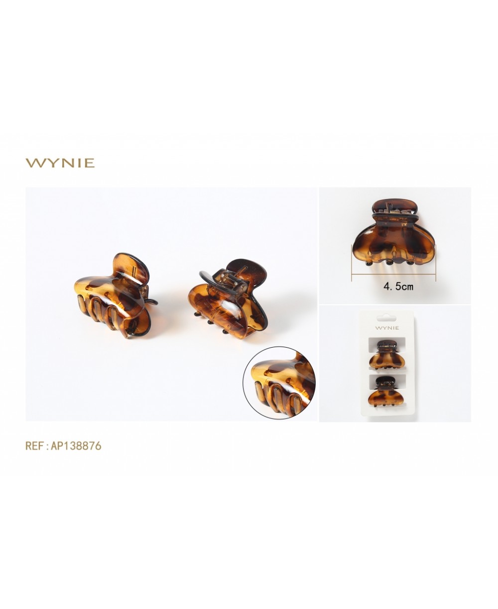 4.5CM PINZA DE PELO DE PLASTICO MARRÓN CON MANCHAS