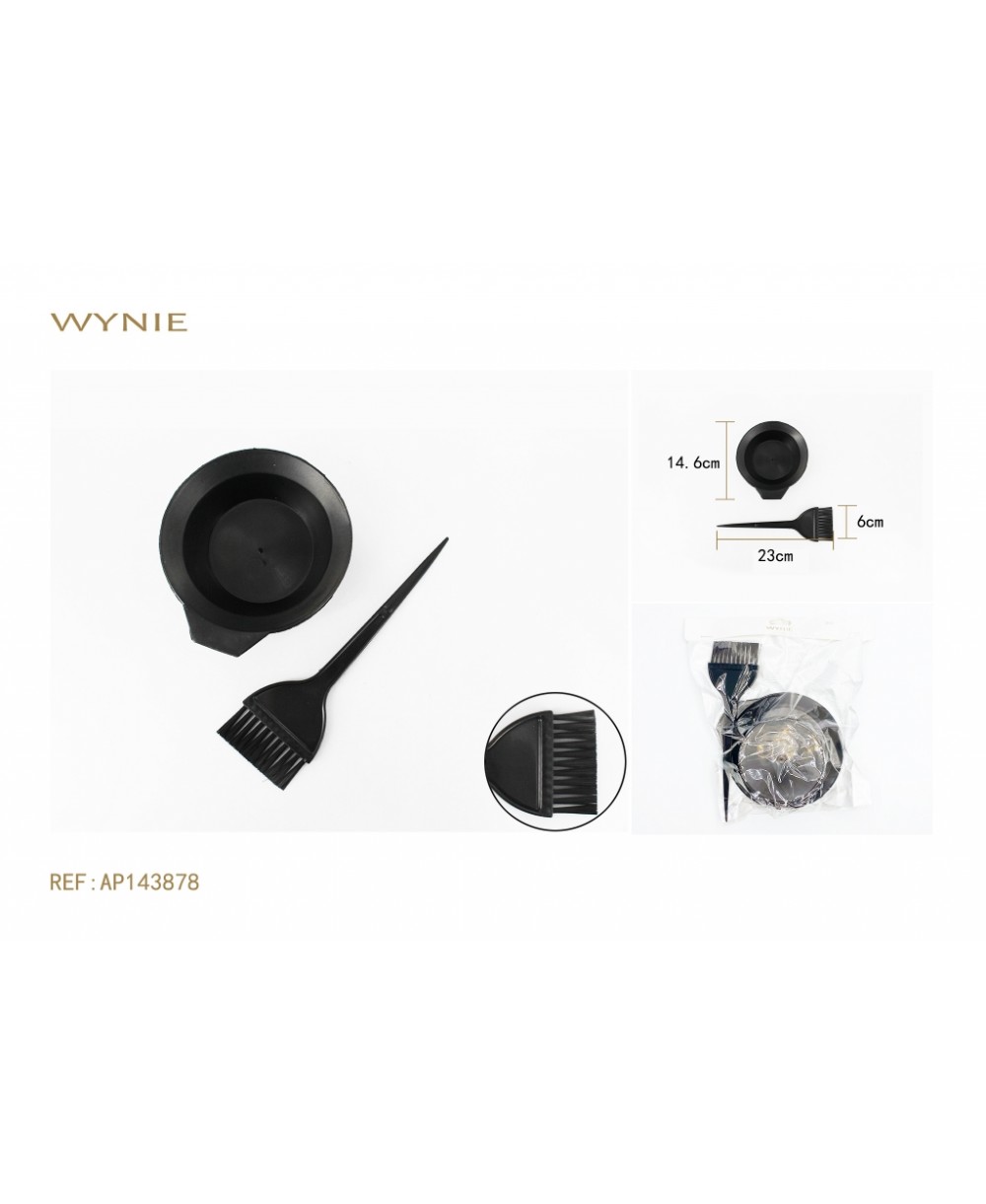 CEPILLO 20.5*6CM, CUENCO TINTE 14.6CM, PLÁSTICO NEGRO