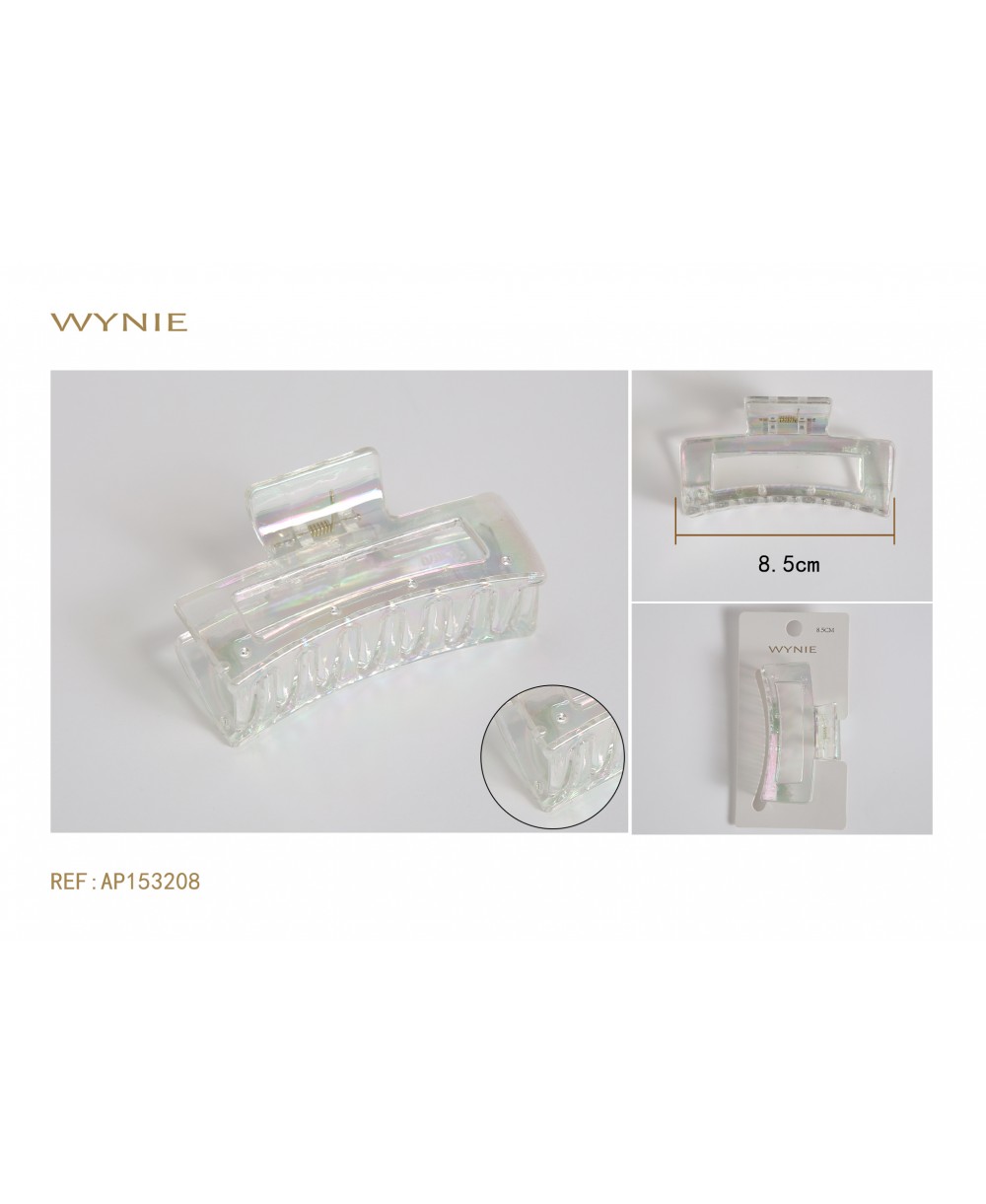 PINZA DE PELO DE PLÁSTICO HOLOGRÁFICA BLANCA DE 8.5 CM.