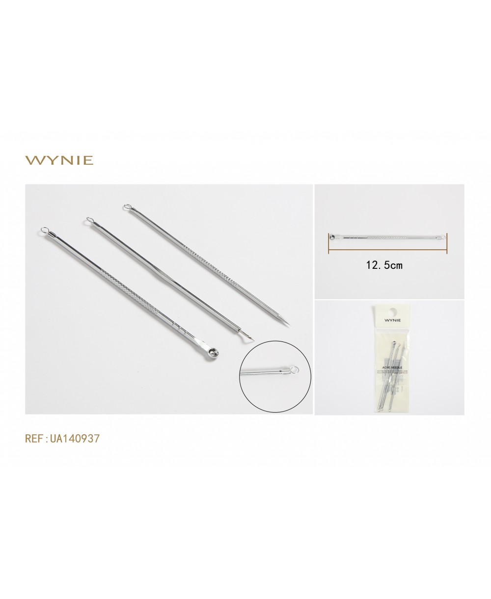 12CM AGUJA Y EXTRADOR DE ACNE DE ACERO INOXIDABLE COLOR PLATA