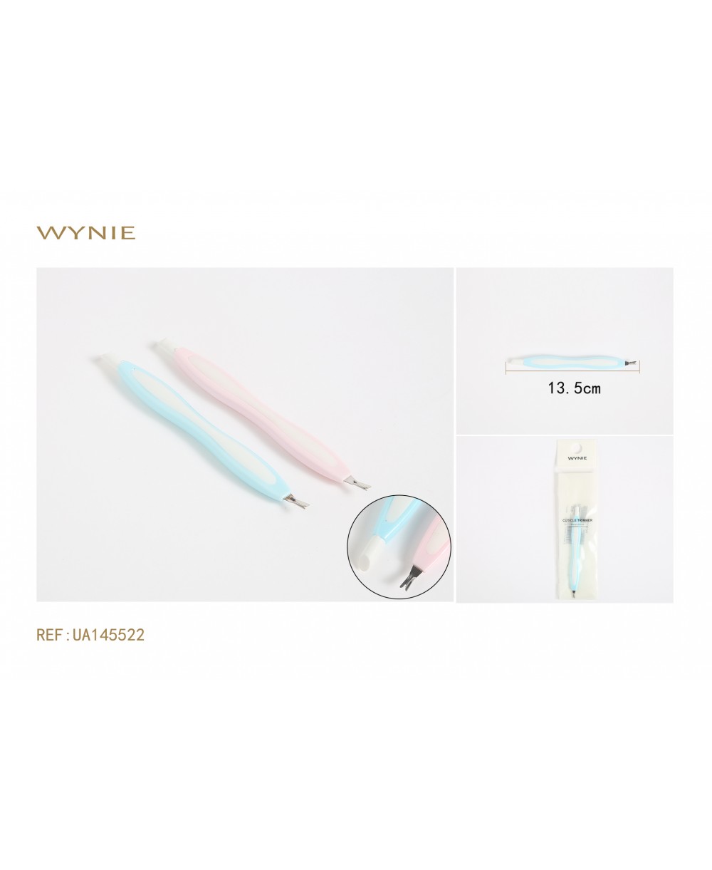 13.5CM QUITA CUTICULAS DE PLASTICO COLOR AZUL Y ROSA