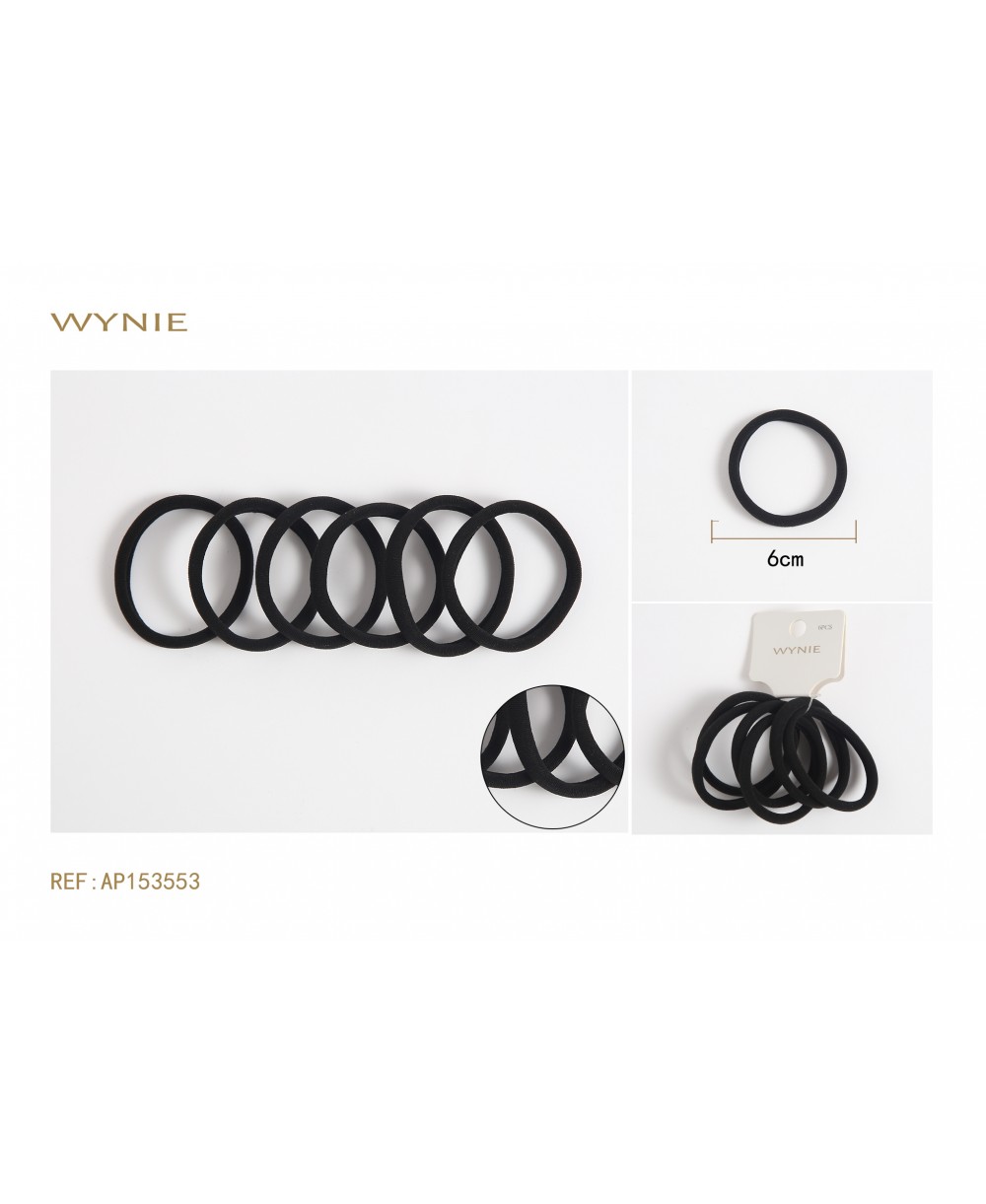 6 COLETEROS PARA EL PELO DE 6 CM, HECHOS DE POLIÉSTER, NEGROS