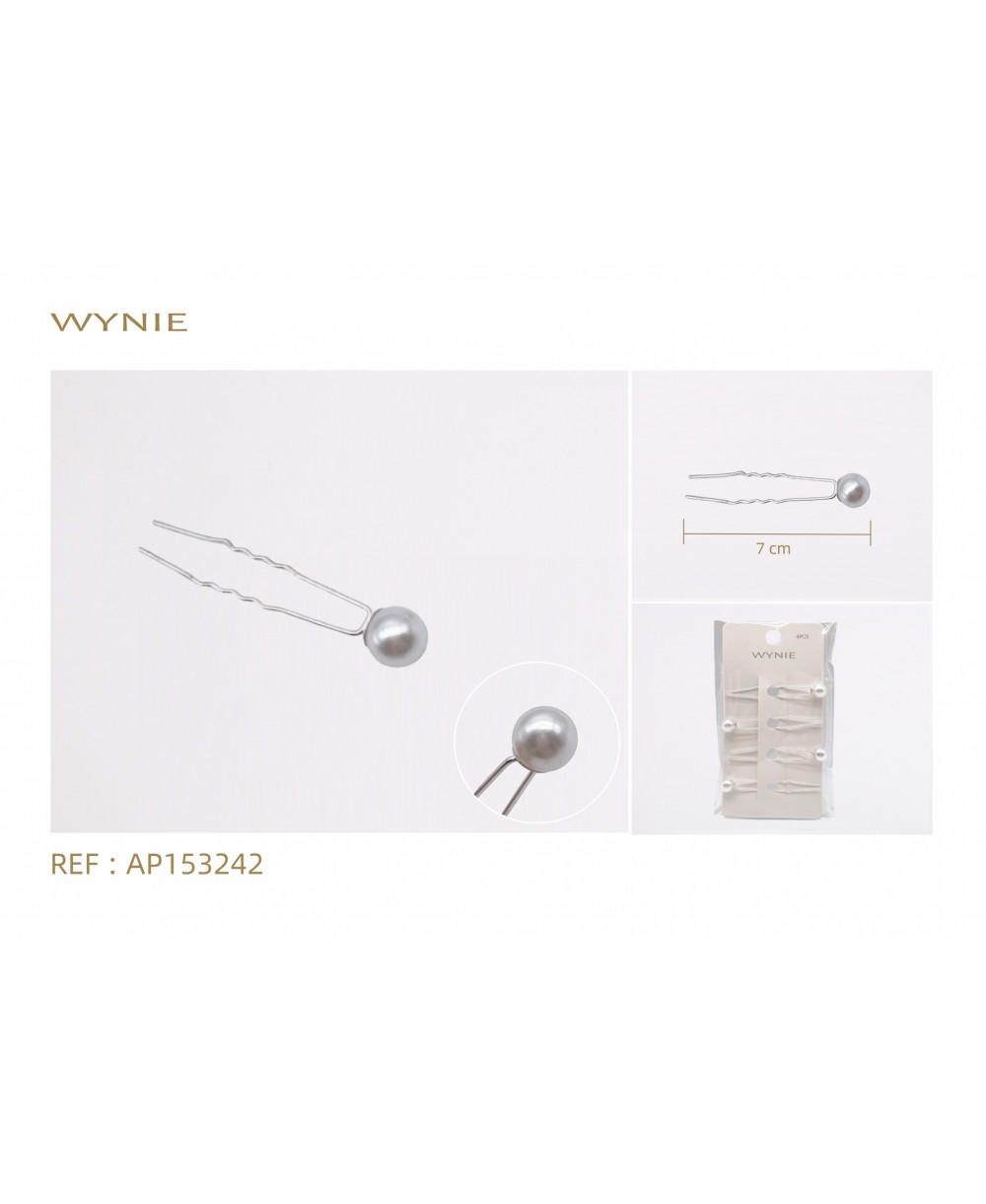 4 PINZAS PARA EL PELO DE 7 X 1 CM, COLOR PLATEADO, HIERRO Y PLÁSTICO.