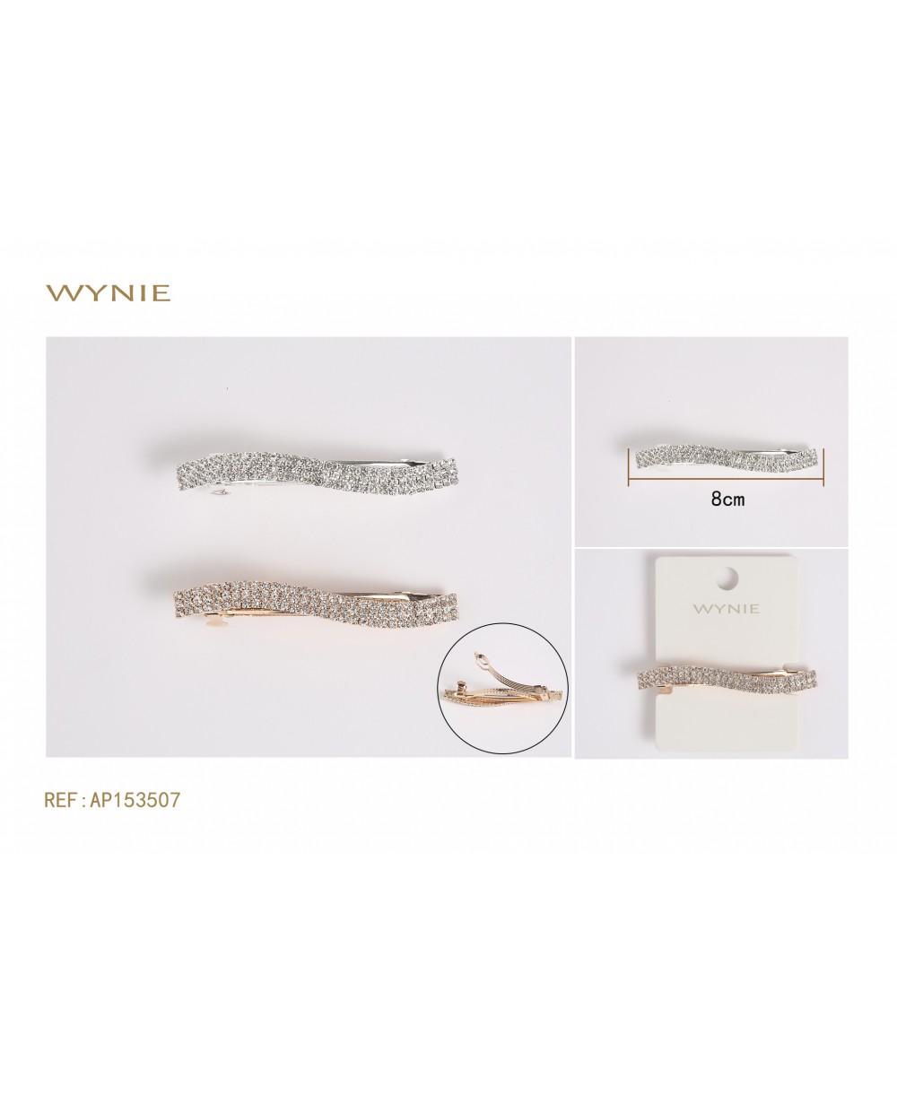 12 Unidades/Paquete. 0.35 €/Unidad 4 PINZAS PARA EL PELO DE 7 X 0,8 CM,COLOR PLATEADO,HIERRO Y CRISTAL.