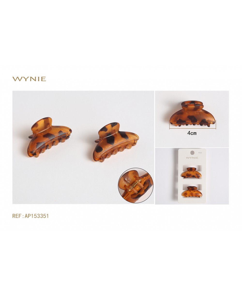 2 PINZAS PARA EL PELO DE 4 CM, PLÁSTICO, MARRÓN