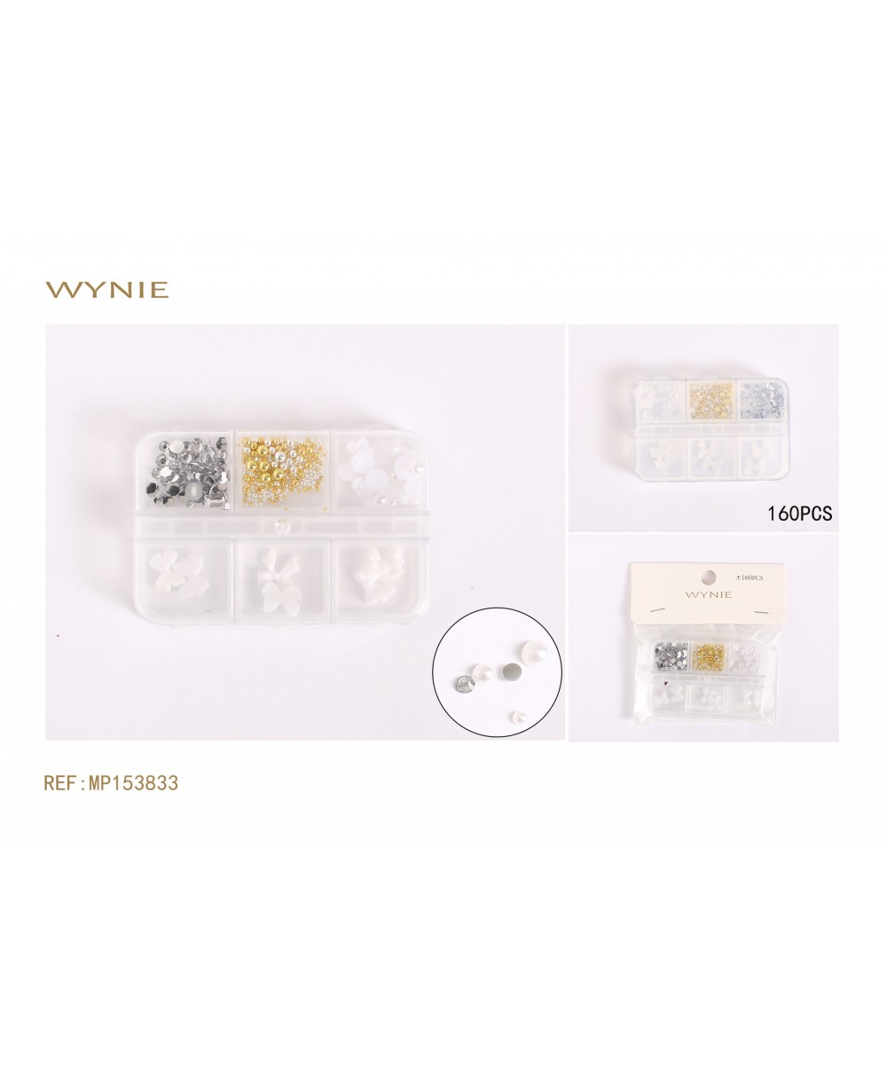 DECORACIONES PARA UÑAS 160 PIEZAS RESINA, BLANCO, DORADO, PLATEADO