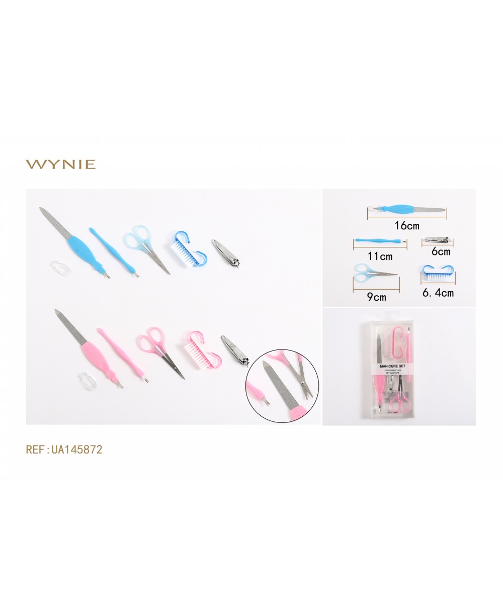 16 CM, 9 CM 6,4 CM, 6 CM, 11 CM SET DE MANICURA, PLÁSTICO + ACERO, ROSA, AZUL