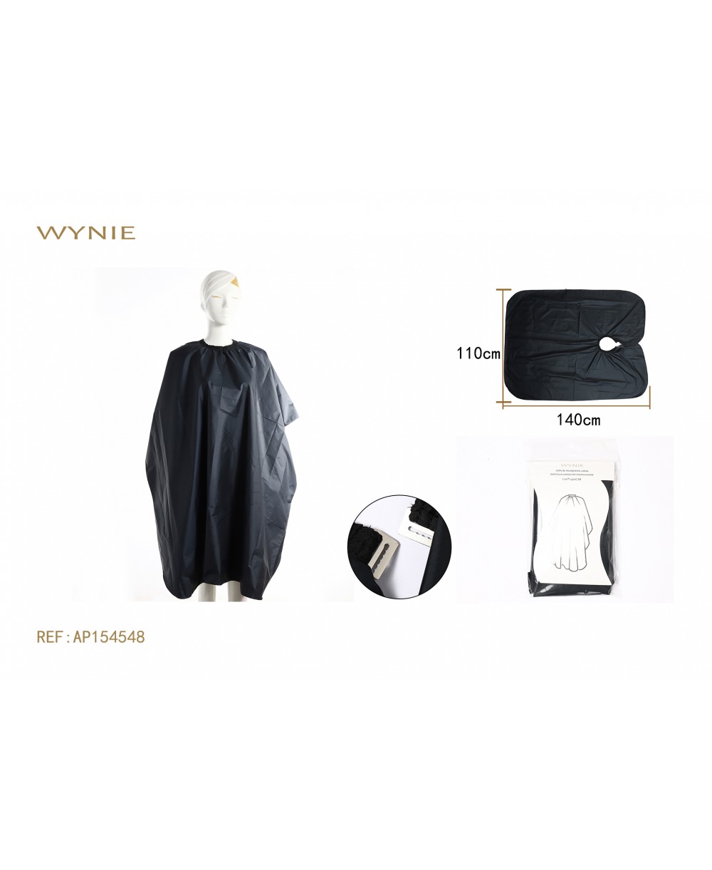 CAPA DE PELUQUERÍA DE POLIÉSTER DE 110*140 CM DE LARGO, NEGRA