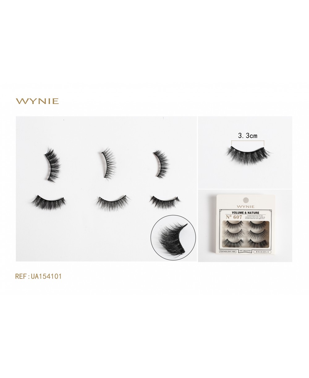 3 PARES DE PESTAÑAS POSTIZAS, FIBRA SINTÉTICA NEGRA