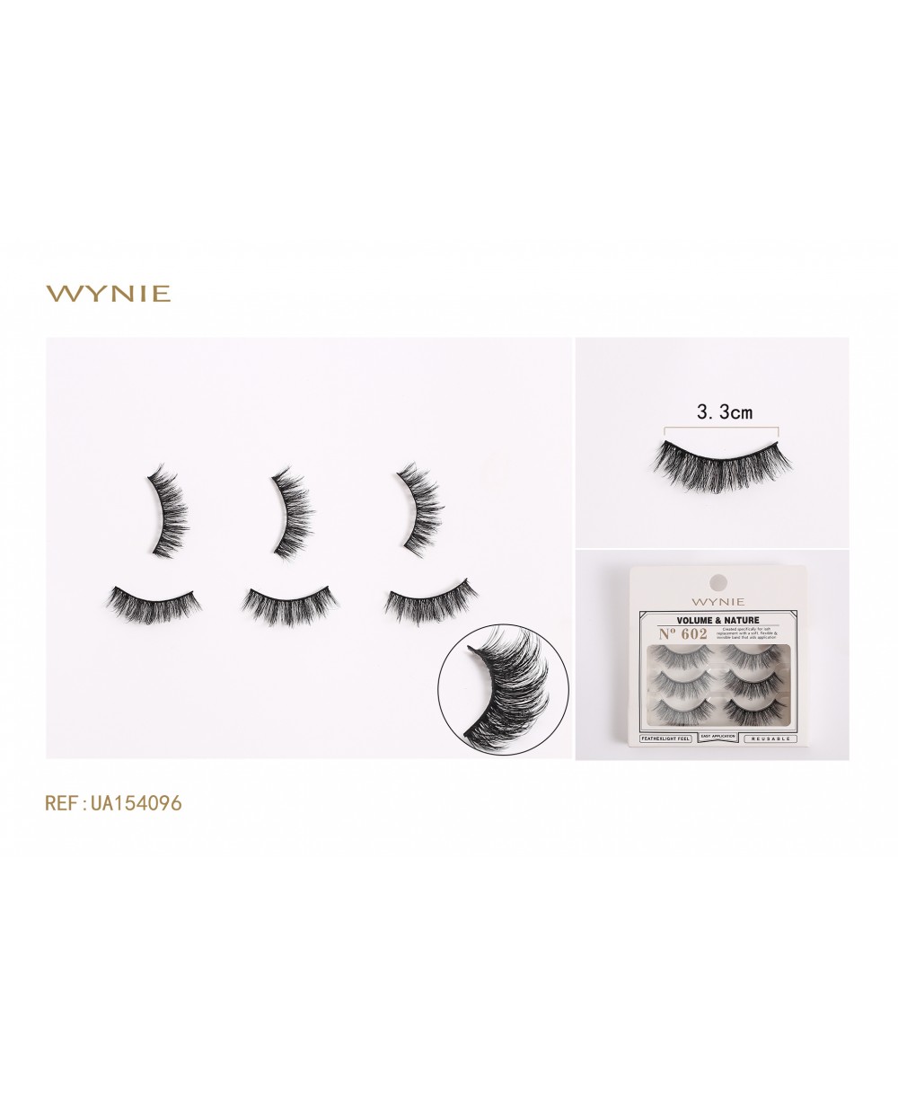 3 PARES DE PESTAÑAS POSTIZAS, FIBRA SINTÉTICA NEGRA