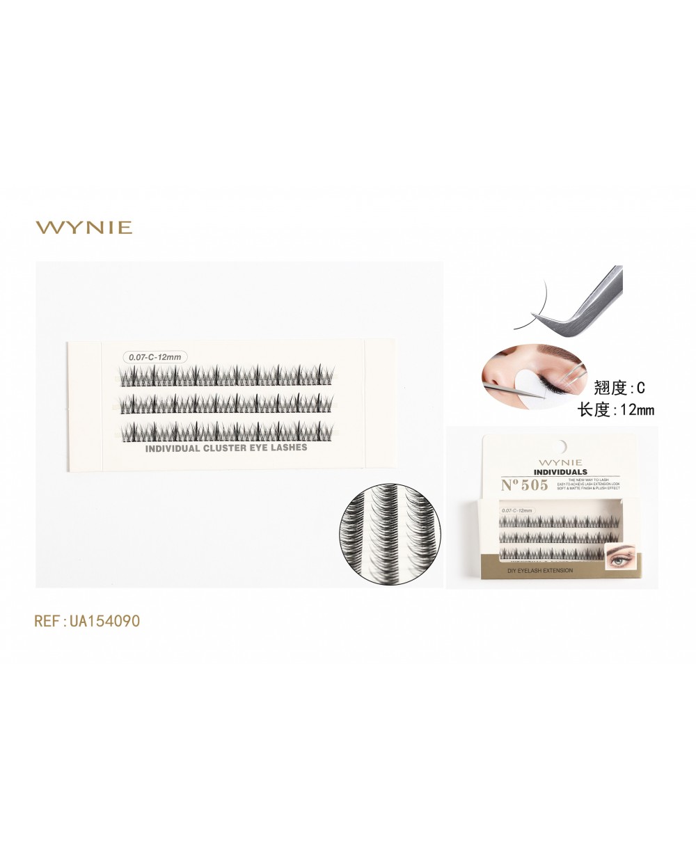 PESTAÑAS POSTIZAS EN MECHONES 0.07-C-12MM, FIBRA SINTÉTICA NEGRA