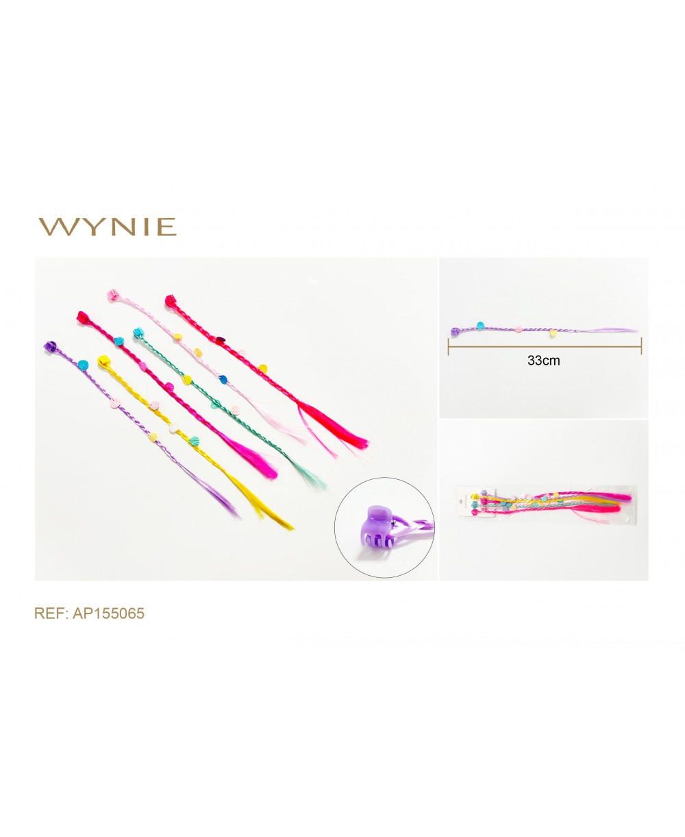PELO POSTIZO 33CM, FIBRA SINTÉTICA, PLÁSTICO, AMARILLO, ROSA, FUCSIA BRILLANTE, FUCSIA, VERDE OSCURO, MORADO CLARO, PELO FALSO PARA NIÑOS, TRENZAS DE COLORES, ACCESORIOS HIP-HOP, NO DAÑA EL CABELLO