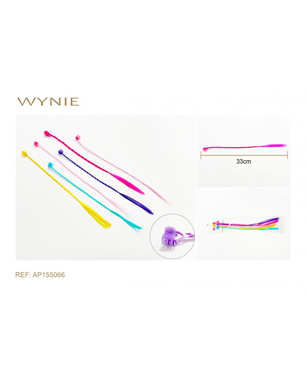 PELO POSTIZO 33CM, FIBRA SINTÉTICA, PLÁSTICO, AMARILLO, ROSA, FUCSIA BRILLANTE, FUCSIA, VERDE OSCURO, MORADO CLARO, PELO FALSO PARA NIÑOS, TRENZAS DE COLORES, ACCESORIOS HIP-HOP, NO DAÑA EL CABELLO