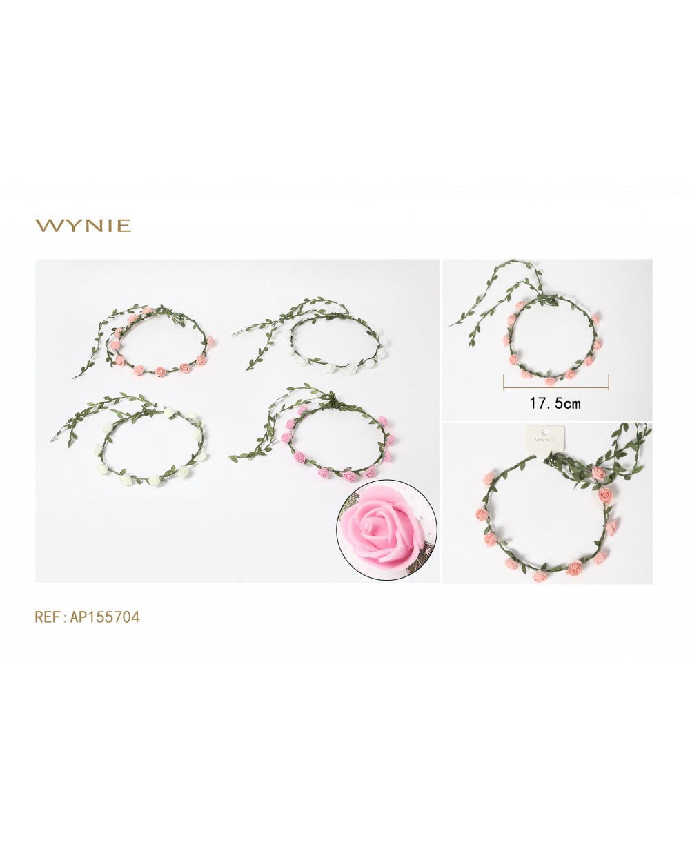 CORONA DE FLORES 55CM, POLIETILENO, POLIÉSTER, ALAMBRE, BLANCO, BLANCO LECHE, ROSA, ROJO, ACCESORIOS PARA EL PELO ESTILO BOSQUE, ACCESORIOS FOTOGRÁFICOS ELEGANTES ADECUADOS PARA VACACIONES EN LA PLAYA