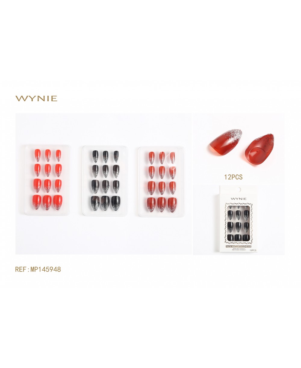 12PS UÑAS POSTIZAS DE PLASTICO COLOR ROJO VINO,ROJO OSCURO,NEGRO