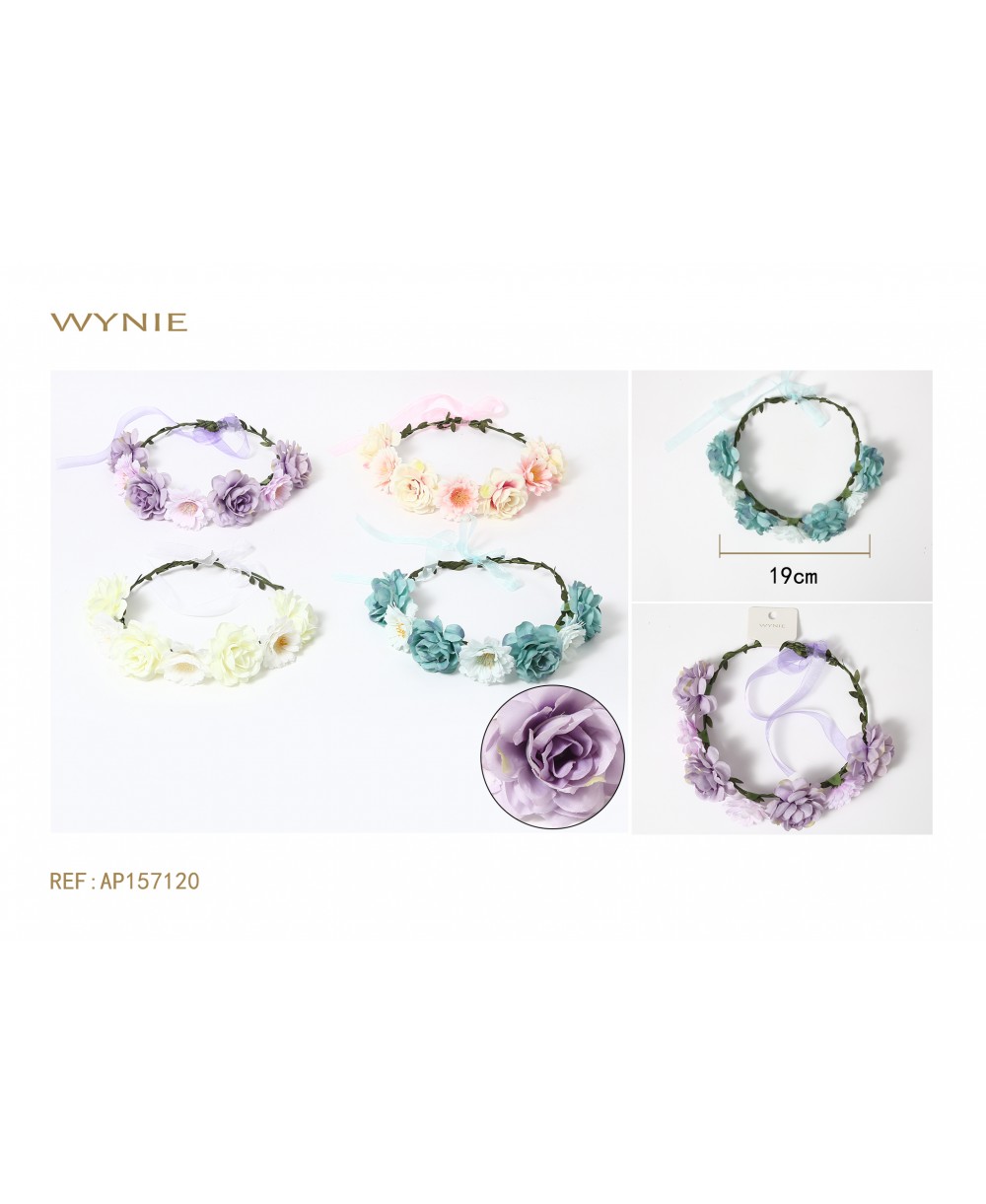 CORONA DE FLORES 19CM, POLIÉSTER, BLANCO, AGUA, ROSA, MORADO CLARO, ACCESORIOS PARA EL PELO ESTILO BOSQUE, ACCESORIOS FOTOGRÁFICOS ELEGANTES ADECUADOS PARA VACACIONES EN LA PLAYA
