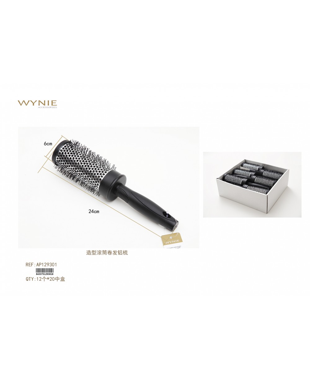 CEPILLO DE PELO TÉRMICO DE 6*24CM, TUBO DE ALEACIÓN DE ALUMINIO COBRE, MANGO DE PLÁSTICO NEGRO, CON CUERPO DE ALUMINIO QUE RETIENE EL CALOR, PARA UN SECADO RÁPIDO Y RIZOS BIEN DEFINIDOS.