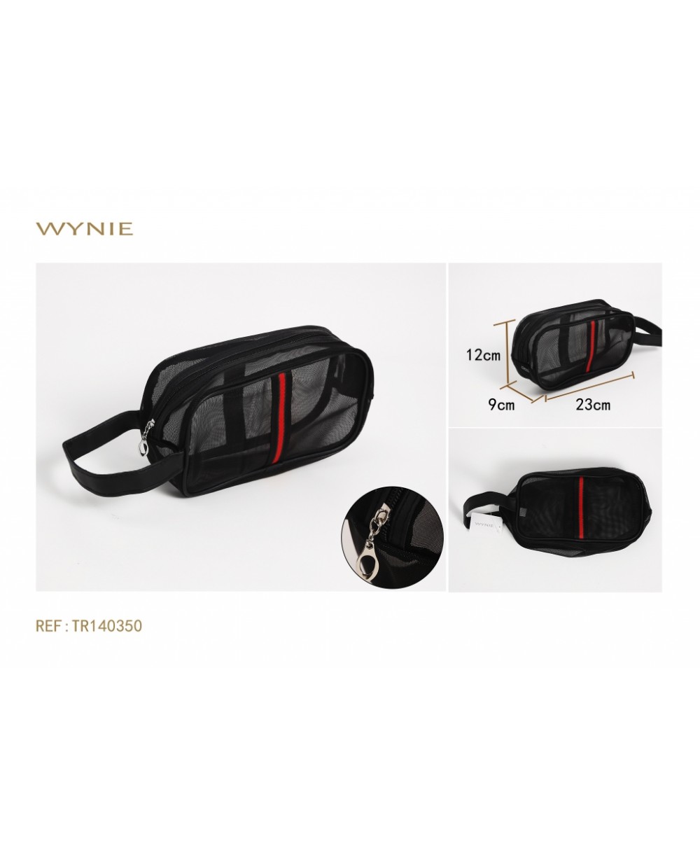TROUSSE DE TOILETTE DE VOYAGE 23 * 12 * 9CM , NYLON, POLYURÉTHANE , NOIR