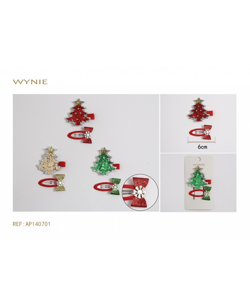 PINCE À CHEVEUX 6CM, COULEUR NOËL, POLYESTER, SIMILICUIR, FER
