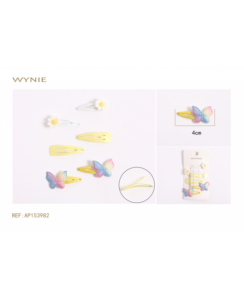 PINCE À CHEVEUX, FER 4CM + RÉSINE + POLYESTER, BLANC, JAUNE, JAUNE + COULEUR