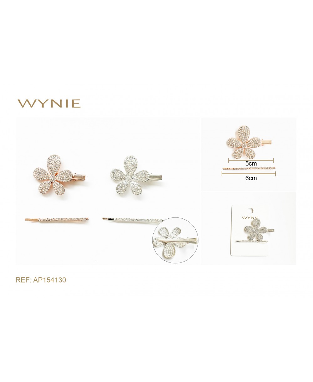 PINCES À CHEVEUX 5.0CM, ALLIAGE, VERRE, FER, OR ROSE, ARGENT