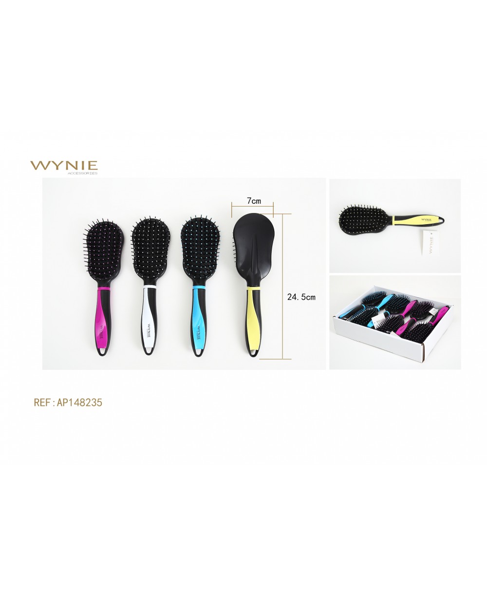 24*6.5CMPEIGNE POUR CHEVEUX RAIDES ANTISTATIQUE, COULEUR ROSE, BLEU, JAUNE, BLANC