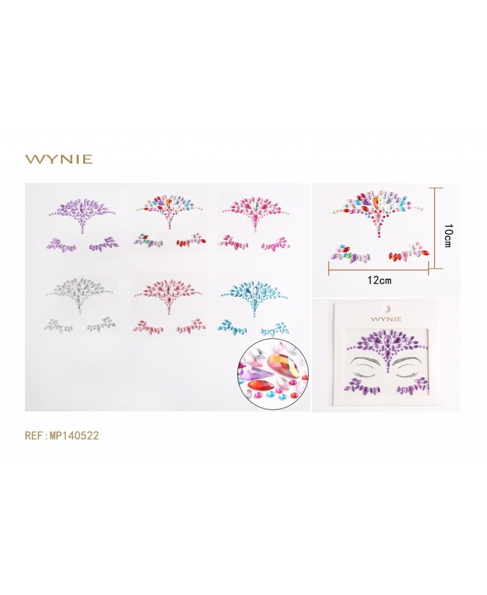 12 Unités/Forfait. 0.5 €/Unité STICKER VISAGE 10*12CM, EN ACRYLIQUE, MULTICOLORE, VIOLET, ARGENT, BLEU CLAIR, ROSE, FUCHSIA